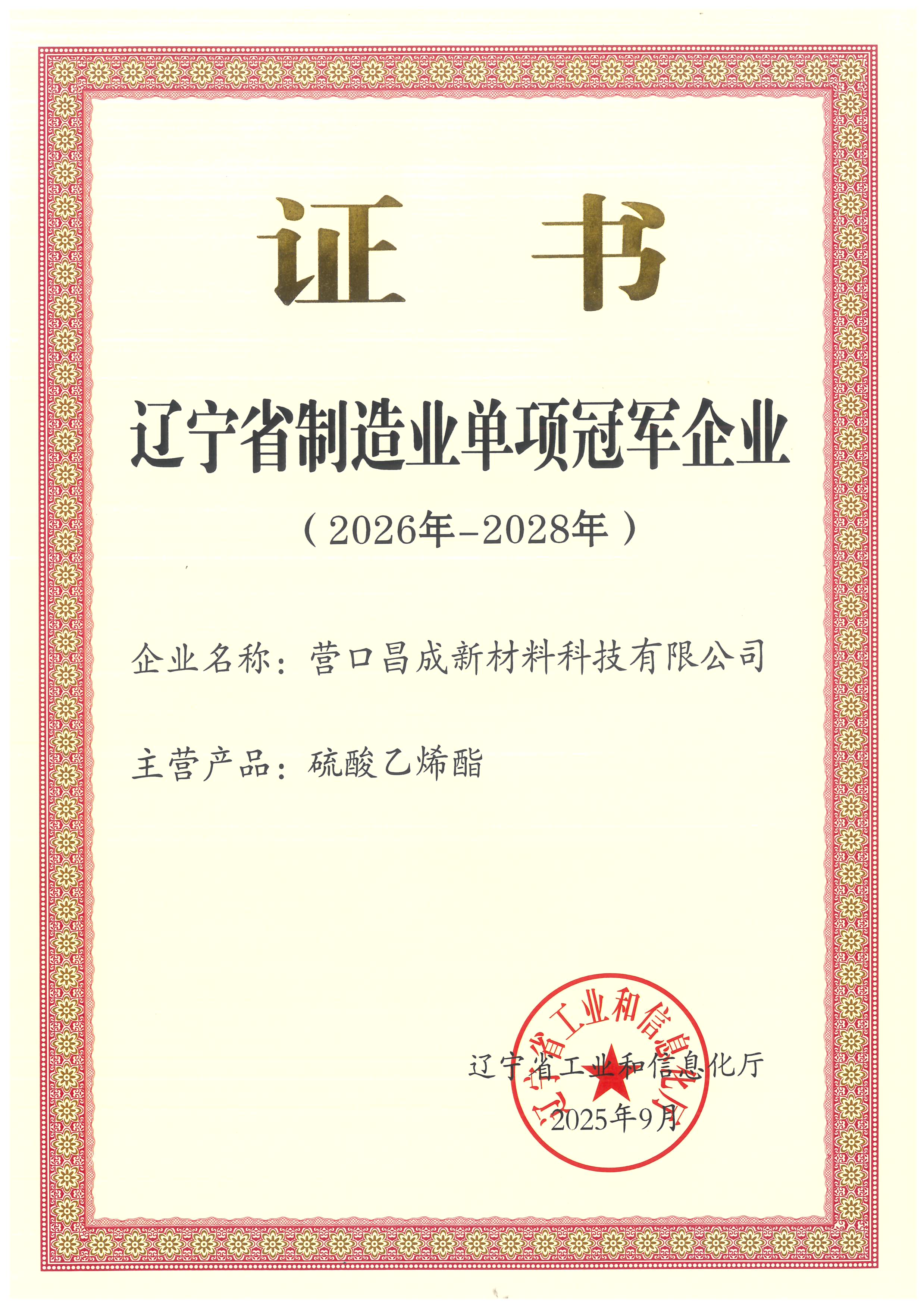 遼寧省制造業(yè)單項冠軍企業(yè)