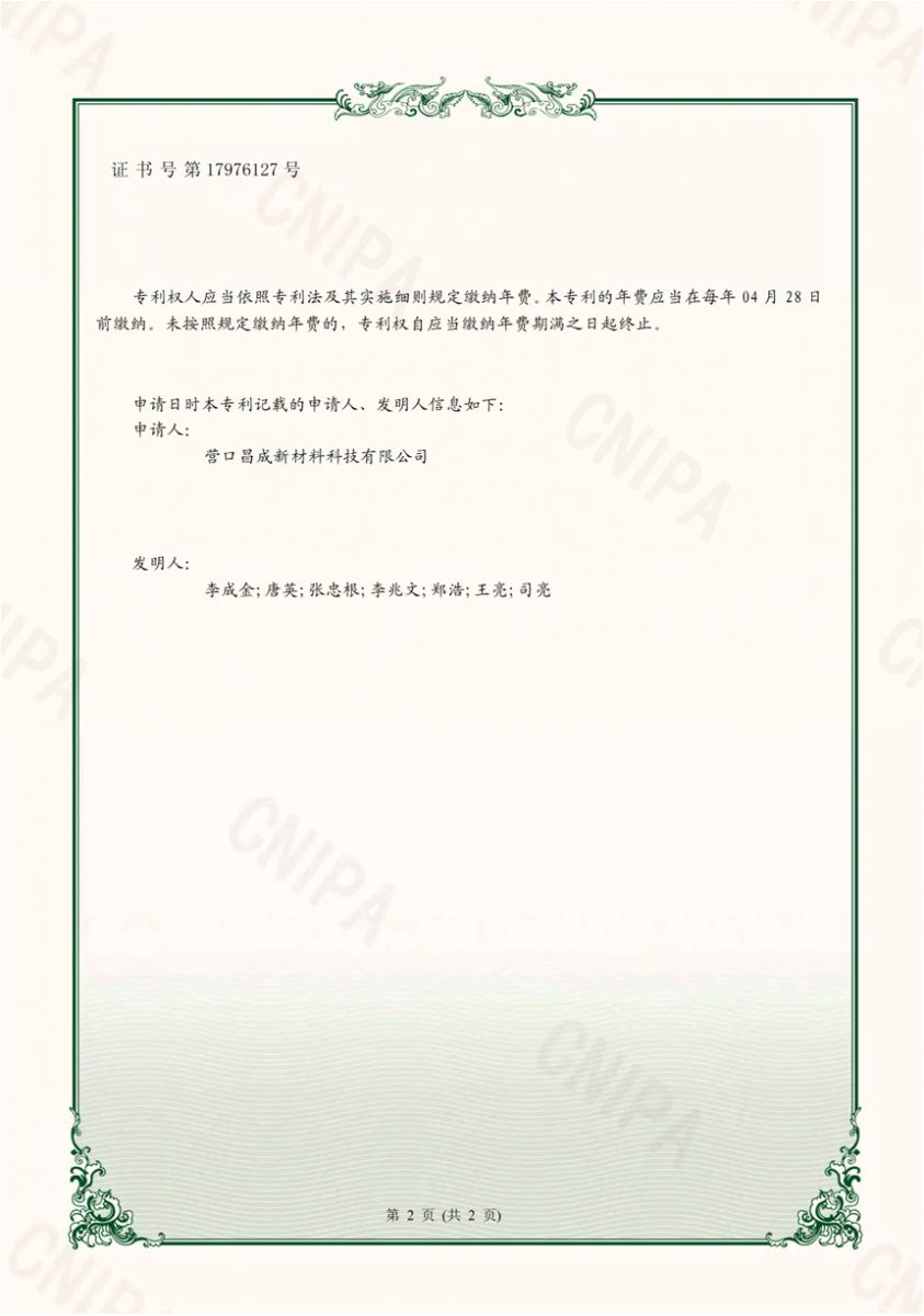 Copyright(C)2021,Yingkou Changcheng New Material Technology Co., Ltd. All Rights Reserved.